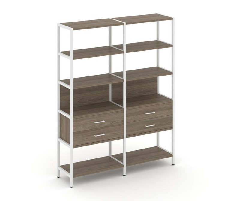 Shelf System Двухсекционный стеллаж пятиярусный с ящиками SN.STM-522 Вяз Благородный/Металл Белый 15