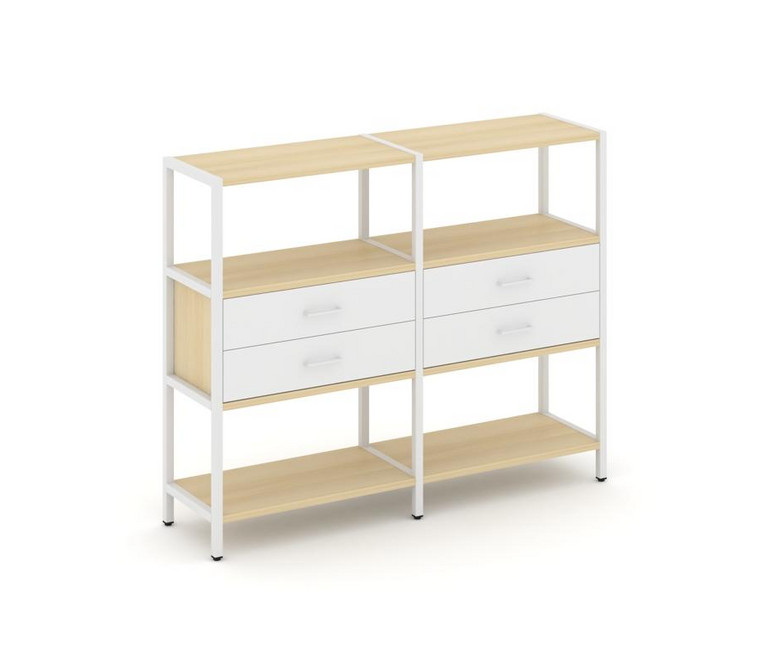 Shelf System Двухсекционный стеллаж трехярусный с ящиками SN.STM-322 Акация Лорка/Белый/Металл Белый