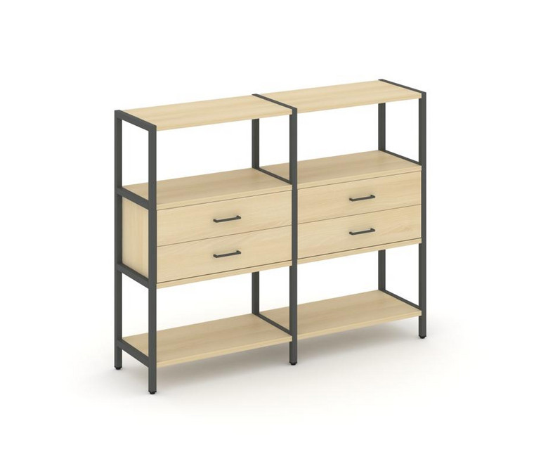 Shelf System Двухсекционный стеллаж трехярусный с ящиками SN.STM-322 Акация Лорка/Металл Антрацит 15