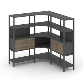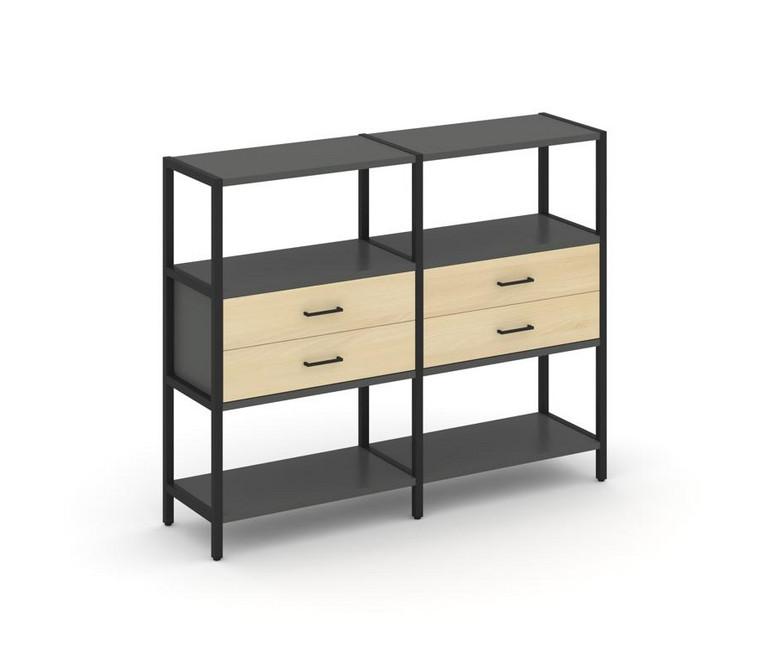 Shelf System Двухсекционный стеллаж трехярусный с ящиками SN.STM-322 Антрацит/Акация Лорка/Металл Че