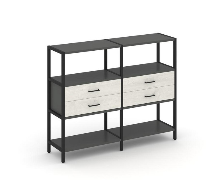 Shelf System Двухсекционный стеллаж трехярусный с ящиками SN.STM-322 Антрацит/Дуб Наварра/Металл Чер