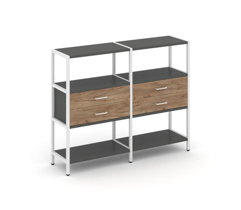 Shelf System Двухсекционный стеллаж трехярусный с ящиками SN.STM-322 Антрацит/Дуб Табак/Металл Белый