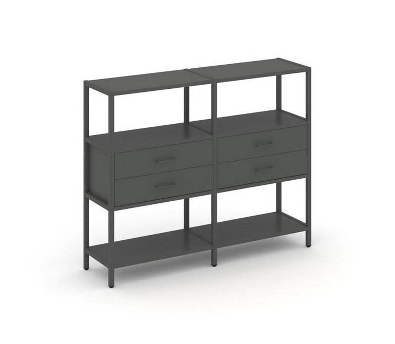 Shelf System Двухсекционный стеллаж трехярусный с ящиками SN.STM-322 Антрацит/Металл Антрацит 1590*4