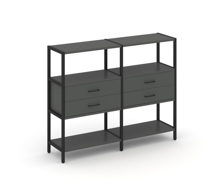 Shelf System Двухсекционный стеллаж трехярусный с ящиками SN.STM-322 Антрацит/Металл Черный 1590*400