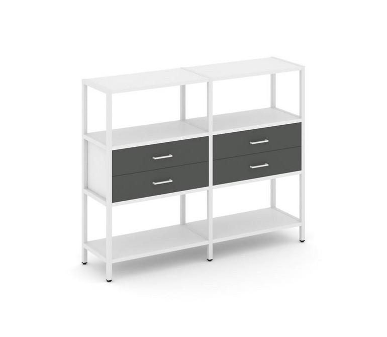 Shelf System Двухсекционный стеллаж трехярусный с ящиками SN.STM-322 Белый/Антрацит/Металл Белый 159