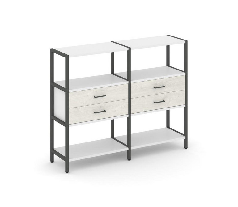 Shelf System Двухсекционный стеллаж трехярусный с ящиками SN.STM-322 Белый/Дуб Наварра/Металл Антрац