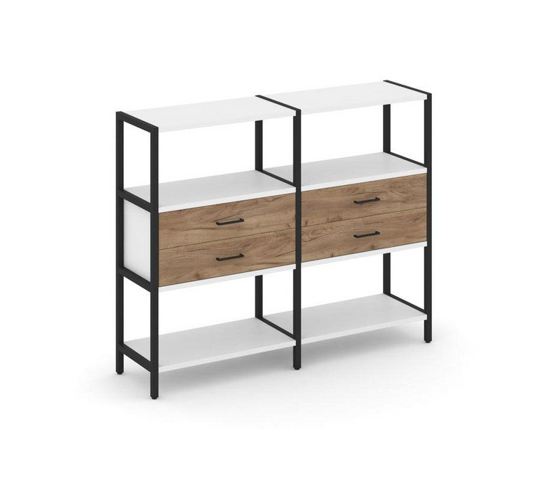 Shelf System Двухсекционный стеллаж трехярусный с ящиками SN.STM-322 Белый/Дуб Табак/Металл Черный 1