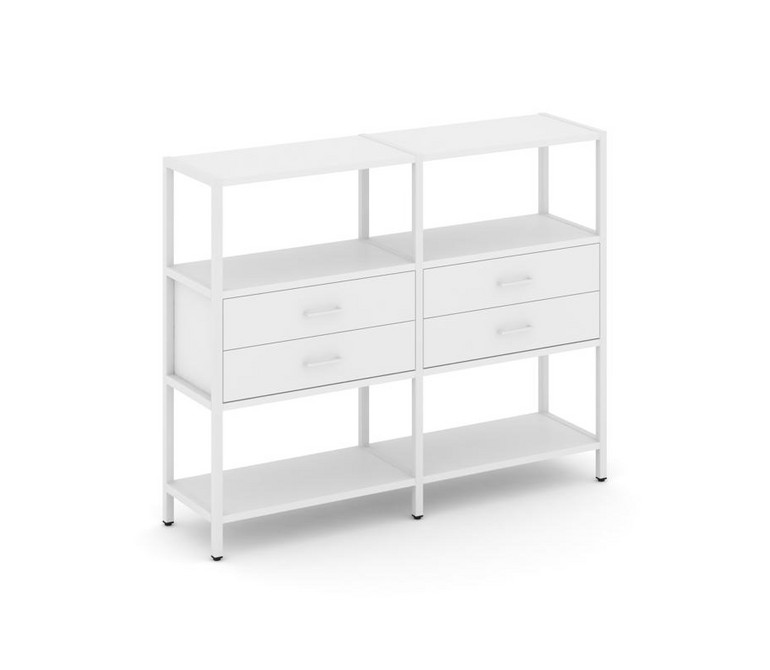 Shelf System Двухсекционный стеллаж трехярусный с ящиками SN.STM-322 Белый/Металл Белый 1590*400*124