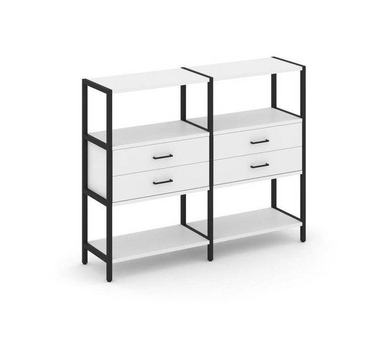 Shelf System Двухсекционный стеллаж трехярусный с ящиками SN.STM-322 Белый/Металл Черный 1590*400*12