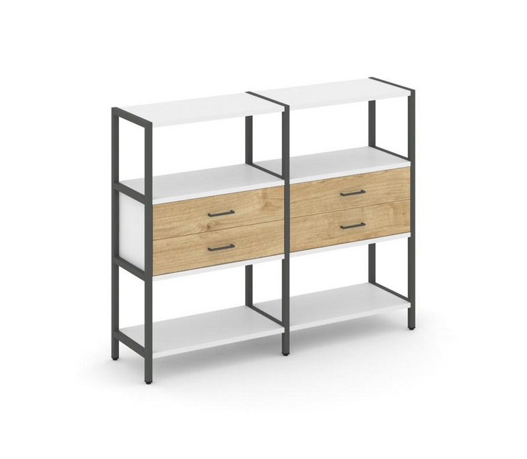 Shelf System Двухсекционный стеллаж трехярусный с ящиками SN.STM-322 Белый/Тиквуд Светлый/Металл Ант