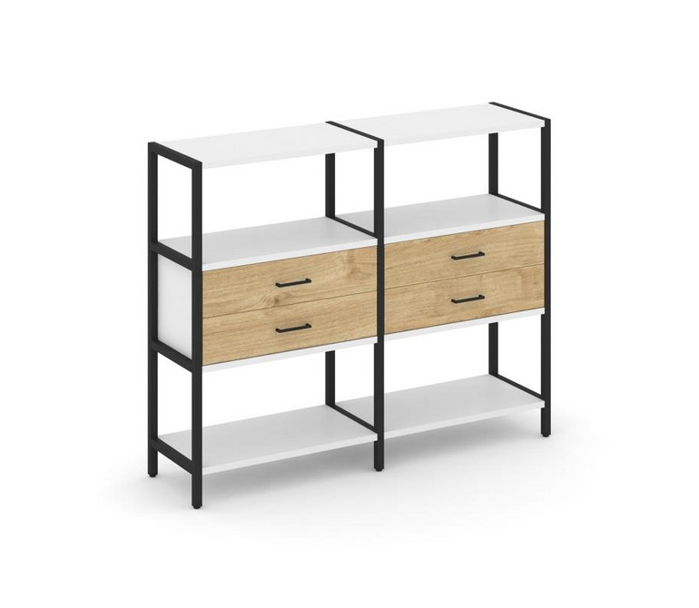 Shelf System Двухсекционный стеллаж трехярусный с ящиками SN.STM-322 Белый/Тиквуд Светлый/Металл Чер