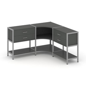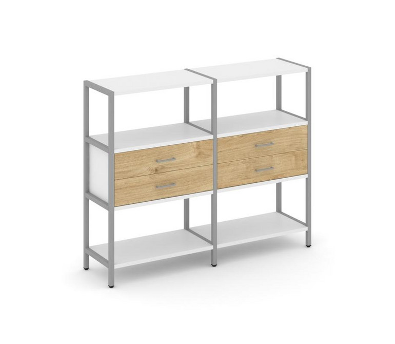 Shelf System Двухсекционный стеллаж трехярусный с ящиками SN.STM-322 Белый/Тиквуд Светлый/Металл Сер