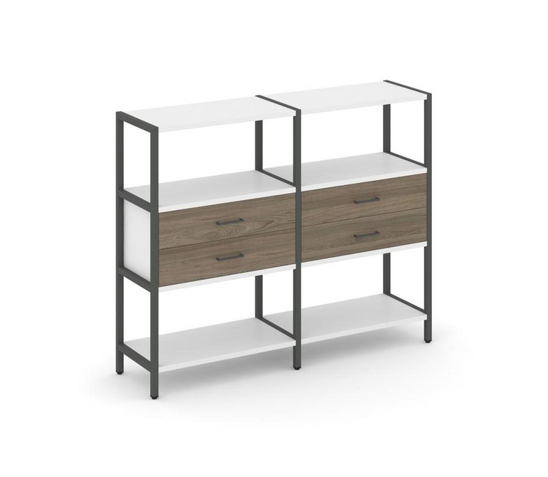 Shelf System Двухсекционный стеллаж трехярусный с ящиками SN.STM-322 Белый/Вяз Благородный/Металл Ан