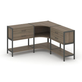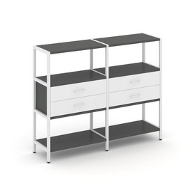 Shelf System Двухсекционный стеллаж трехярусный с ящиками SN.STM-322 Белый/Вяз Благородный/Металл Че