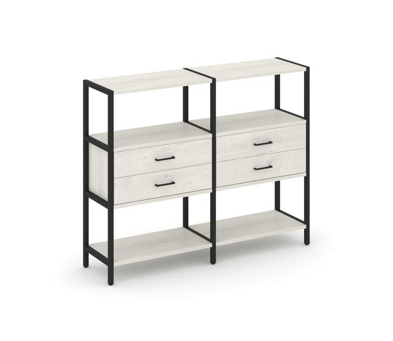 Shelf System Двухсекционный стеллаж трехярусный с ящиками SN.STM-322 Дуб Наварра/Металл Черный 1590*