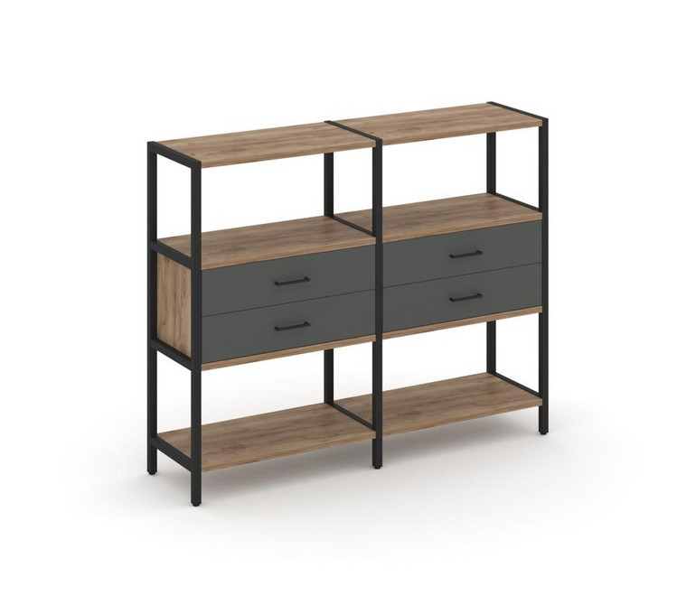 Shelf System Двухсекционный стеллаж трехярусный с ящиками SN.STM-322 Дуб Табак/Антрацит/Металл Черны