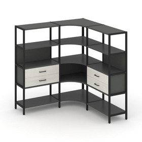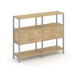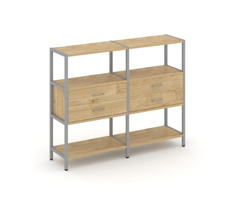 Shelf System Двухсекционный стеллаж трехярусный с ящиками SN.STM-322 Тиквуд Светлый/Металл Серый 159