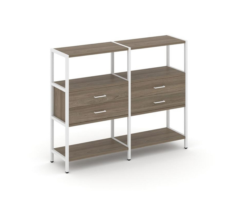 Shelf System Двухсекционный стеллаж трехярусный с ящиками SN.STM-322 Вяз Благородный/Металл Белый 15