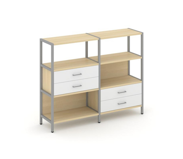 Shelf System Двухсекционный стеллаж трехярусный с ящиками SN.STM-323 Акация Лорка/Белый/Металл Серый