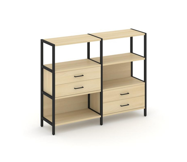 Shelf System Двухсекционный стеллаж трехярусный с ящиками SN.STM-323 Акация Лорка/Металл Черный 1590