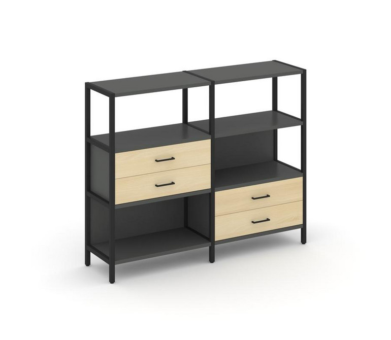 Shelf System Двухсекционный стеллаж трехярусный с ящиками SN.STM-323 Антрацит/Акация Лорка/Металл Че