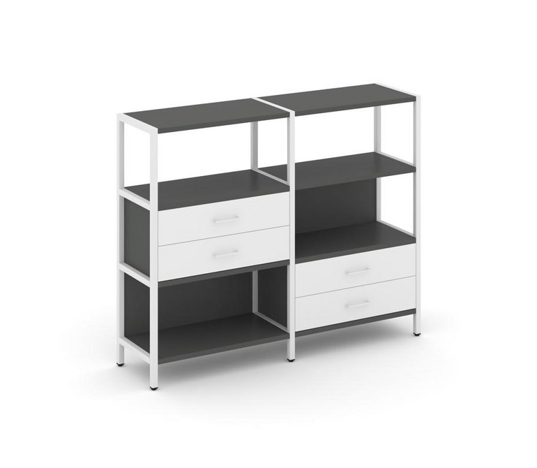 Shelf System Двухсекционный стеллаж трехярусный с ящиками SN.STM-323 Антрацит/Белый/Металл Белый 159