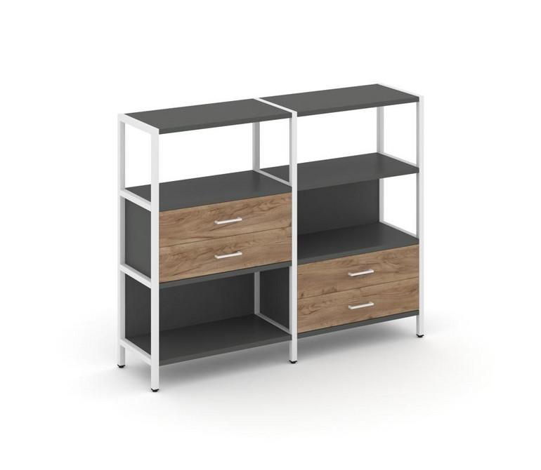 Shelf System Двухсекционный стеллаж трехярусный с ящиками SN.STM-323 Антрацит/Дуб Табак/Металл Белый