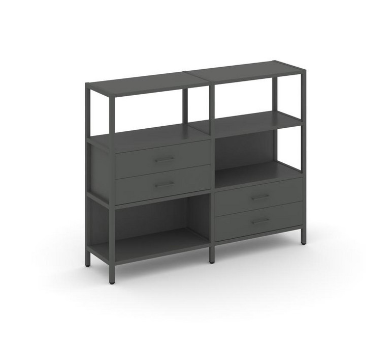 Shelf System Двухсекционный стеллаж трехярусный с ящиками SN.STM-323 Антрацит/Металл Антрацит 1590*4