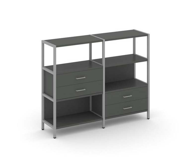 Shelf System Двухсекционный стеллаж трехярусный с ящиками SN.STM-323 Антрацит/Металл Серый 1590*400*