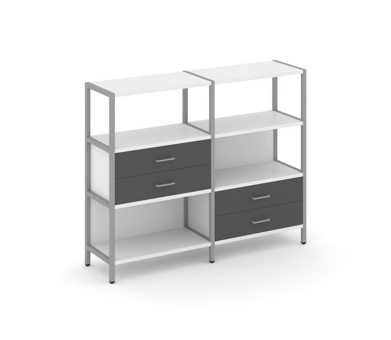 Shelf System Двухсекционный стеллаж трехярусный с ящиками SN.STM-323 Белый/Антрацит/Металл Серый 159