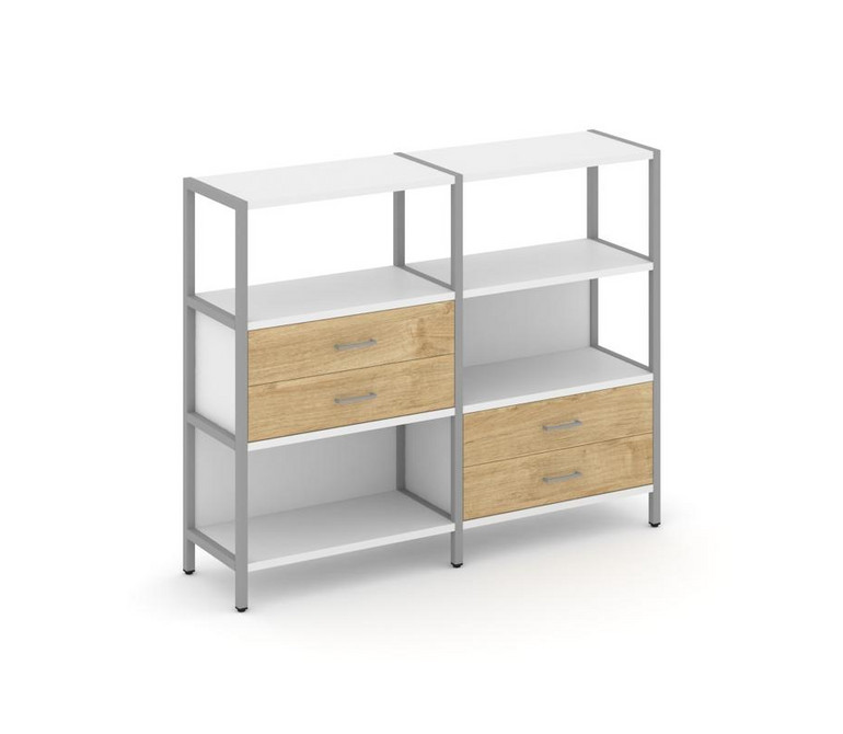 Shelf System Двухсекционный стеллаж трехярусный с ящиками SN.STM-323 Белый/Тиквуд Светлый/Металл Сер