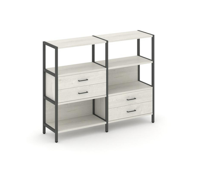 Shelf System Двухсекционный стеллаж трехярусный с ящиками SN.STM-323 Дуб Наварра/Металл Антрацит 159