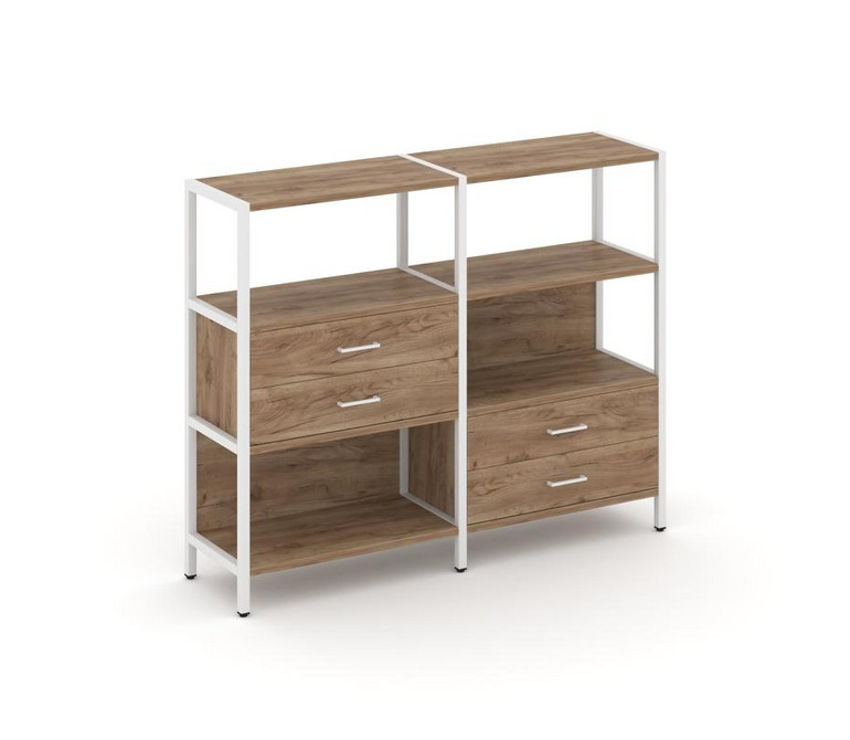 Shelf System Двухсекционный стеллаж трехярусный с ящиками SN.STM-323 Дуб Табак/Металл Белый 1590*400