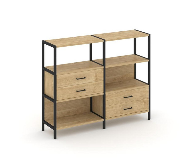 Shelf System Двухсекционный стеллаж трехярусный с ящиками SN.STM-323 Тиквуд Светлый/Металл Черный 15