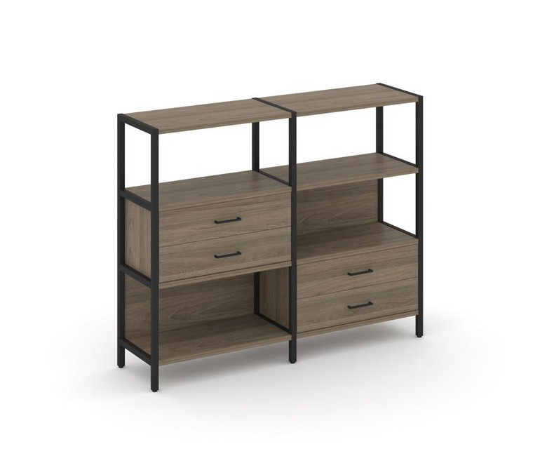 Shelf System Двухсекционный стеллаж трехярусный с ящиками SN.STM-323 Вяз Благородный/Металл Черный 1
