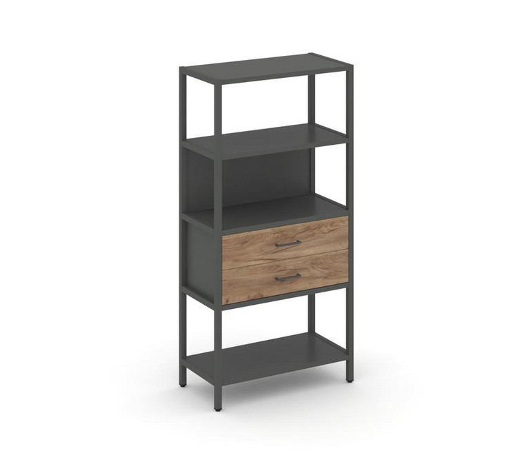 Shelf System Односекционный стеллаж четырехярусный с ящиками SN.STM-412 Антрацит/Дуб Табак/Металл Ан