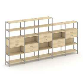 Shelf System Односекционный стеллаж четырехярусный с ящиками SN.STM-412 Дуб Табак/Металл Черный 810*