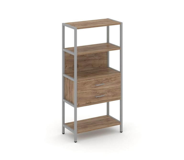 Shelf System Односекционный стеллаж четырехярусный с ящиками SN.STM-412 Дуб Табак/Металл Серый 810*4