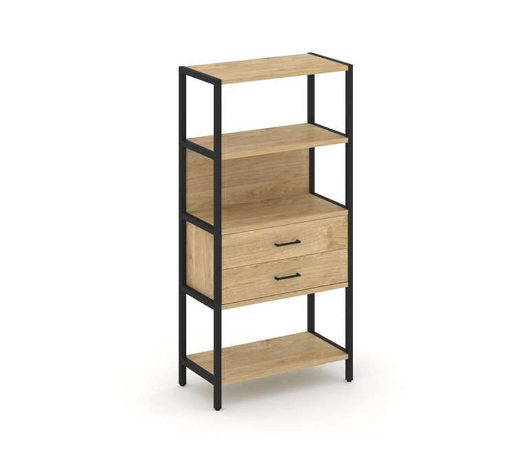 Shelf System Односекционный стеллаж четырехярусный с ящиками SN.STM-412 Тиквуд Светлый/Металл Черный