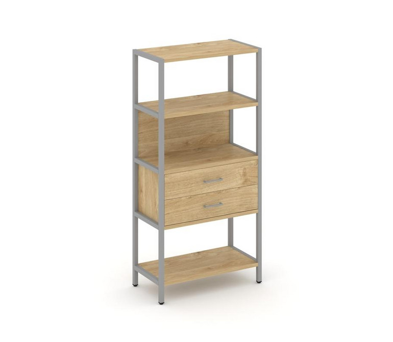 Shelf System Односекционный стеллаж четырехярусный с ящиками SN.STM-412 Тиквуд Светлый/Металл Серый