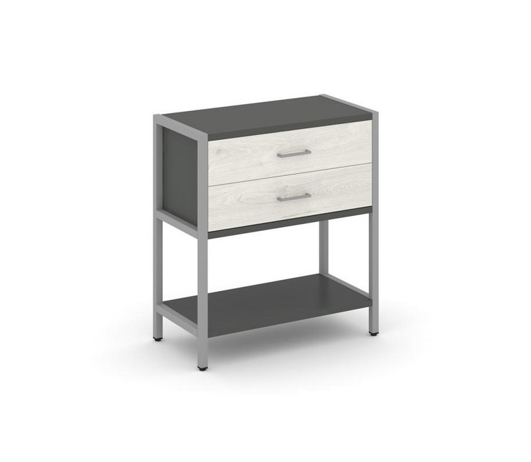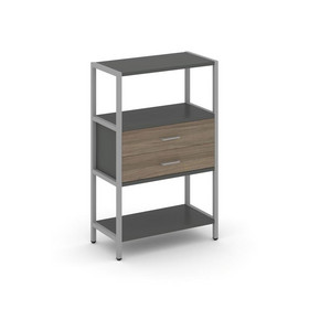 Shelf System Односекционный стеллаж двухярусный с ящиками SN.STM-212 Антрацит/Дуб Наварра/Металл Сер
