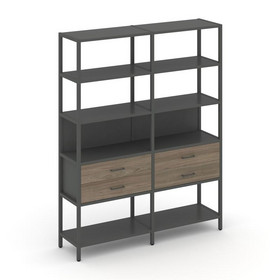 Shelf System Односекционный стеллаж двухярусный с ящиками SN.STM-212 Белый/Дуб Табак/Металл Антрацит