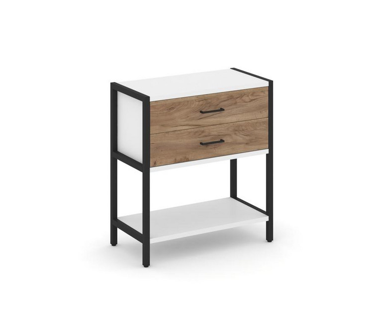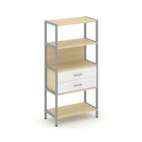 Shelf System Односекционный стеллаж двухярусный с ящиками SN.STM-212 Белый/Дуб Табак/Металл Черный 8