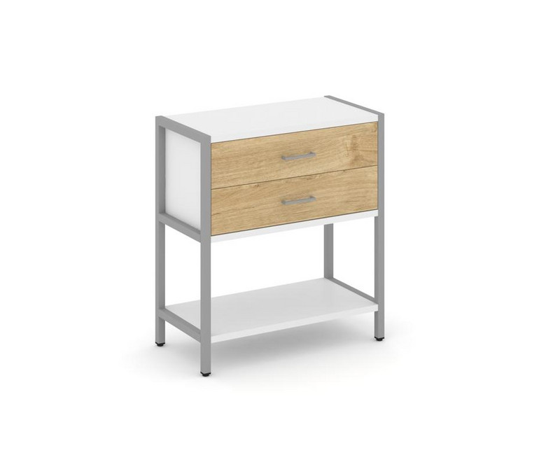Shelf System Односекционный стеллаж двухярусный с ящиками SN.STM-212 Белый/Тиквуд Светлый/Металл Сер