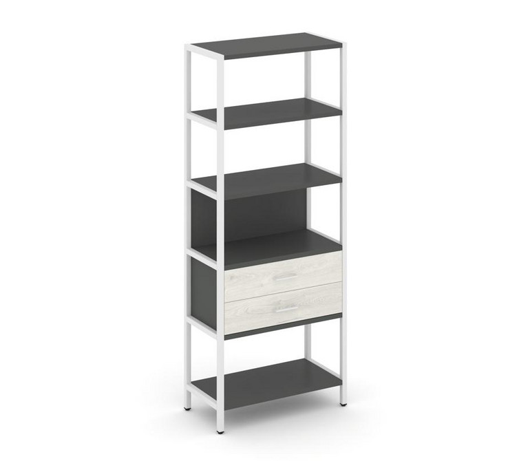 Shelf System Односекционный стеллаж пятиярусный с ящиками SN.STM-512 Антрацит/Дуб Наварра/Металл Бел
