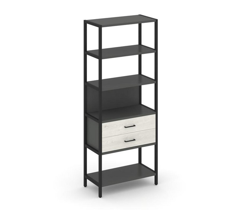 Shelf System Односекционный стеллаж пятиярусный с ящиками SN.STM-512 Антрацит/Дуб Наварра/Металл Чер