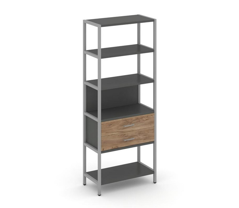 Shelf System Односекционный стеллаж пятиярусный с ящиками SN.STM-512 Антрацит/Дуб Табак/Металл Серый