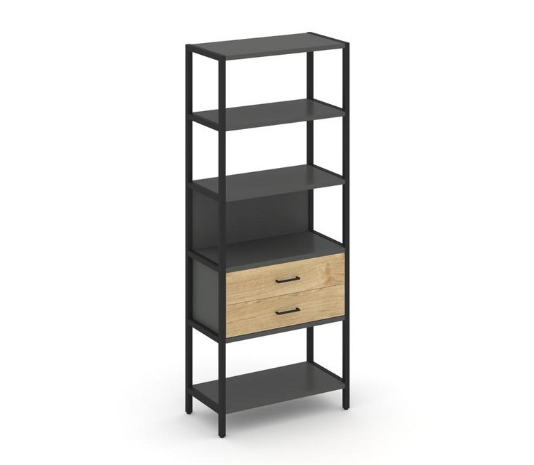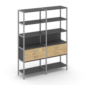 Shelf System Односекционный стеллаж пятиярусный с ящиками SN.STM-512 Антрацит/Тиквуд Светлый/Металл