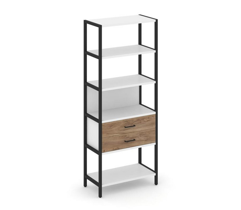 Shelf System Односекционный стеллаж пятиярусный с ящиками SN.STM-512 Белый/Дуб Табак/Металл Черный 8
