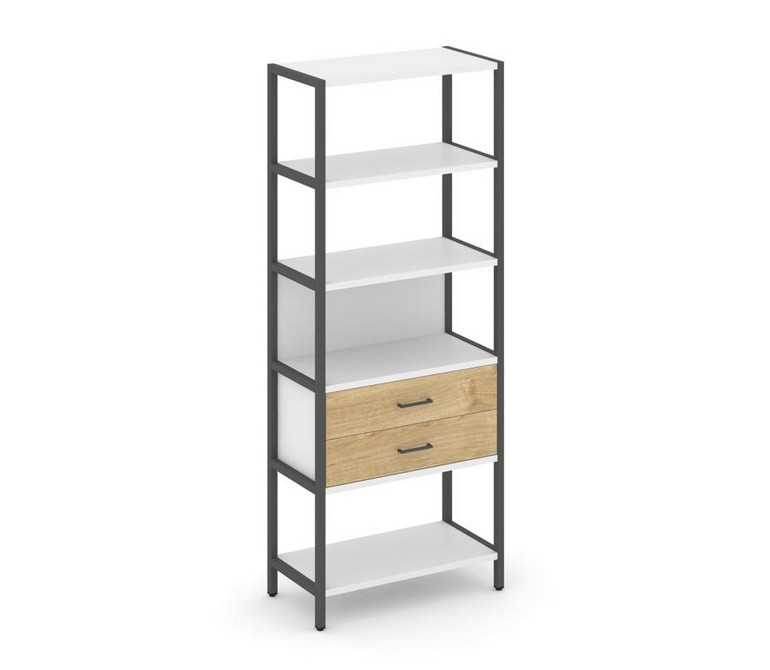 Shelf System Односекционный стеллаж пятиярусный с ящиками SN.STM-512 Белый/Тиквуд Светлый/Металл Ант